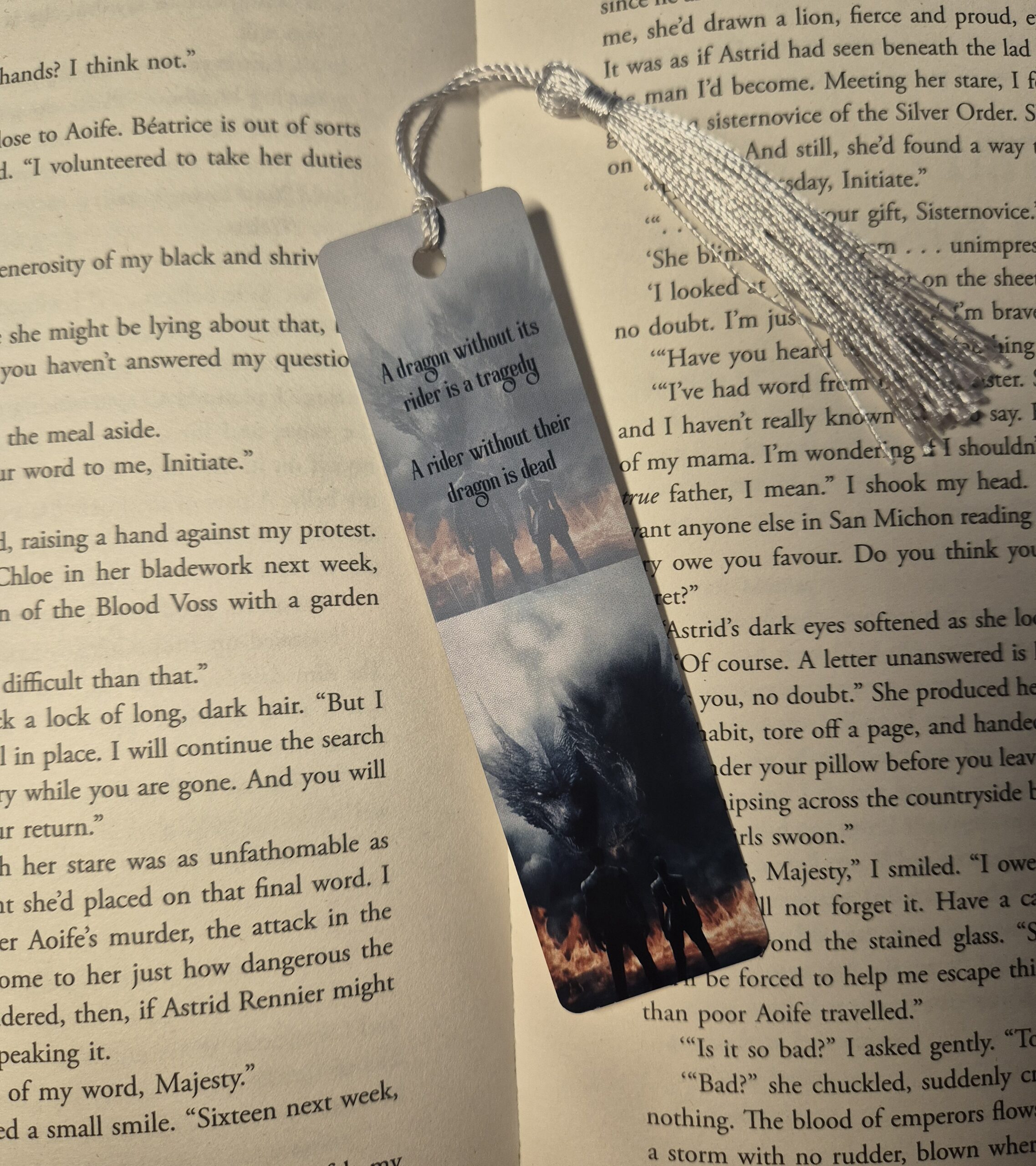 Metalen Boekenlegger – “A dragon without its rider is a tragedy, A rider without their dragon is dead” – Fourth Wing inspired